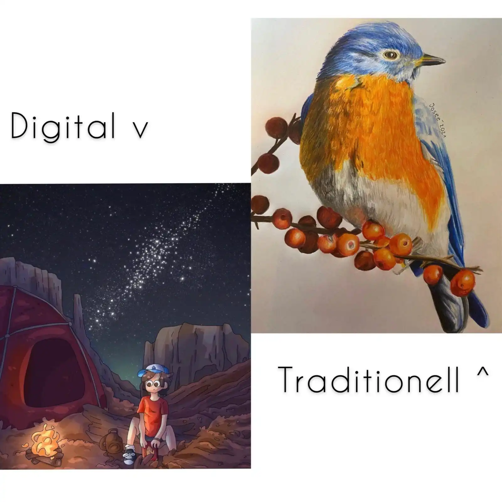 Hab lange Traditionell gearbeitet und 2020 hab ich mein iPad und einen Apple pencel gekauft für meine Ausbildung.